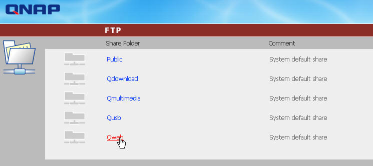 - (2) Refer to the method "1. NAS" to upload the unpacked folder, named "SQLiteManager-*", to "\\IP_of_NAS\Qweb\"